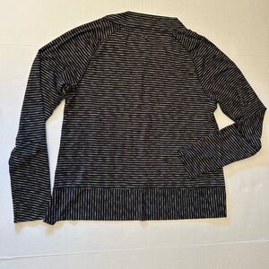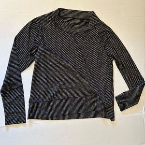 Prana black striped long sleeve top w/asymmetrical hem. 79% polyester, 13% poly, & 8% lycra. Pre owned in excellent condition. Sz-XL