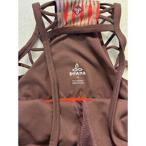 Prana Ardor Dress Racerback Shelf Bra Red Brown Carmine Desert Geo Large