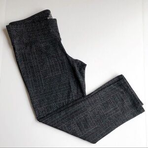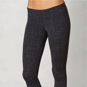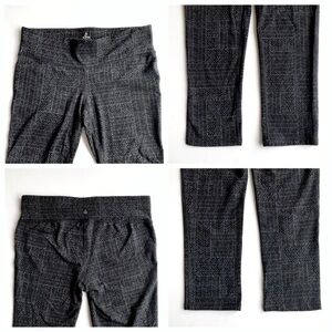 Prana Ashley Cropped Leggings in charcoal gray geometric print. Quick-drying stretch material. Chakara performance fabric. Elastic inside waistband. Body-conscious fit for enhanced function. Cropped length, hits mid calf. Hidden key pocket in waist band. 88% Supplex Nylon, 12% Lycra. Worn but in excellent condition with no visible signs of wear. Approx. 20” inseam, 8” rise and 26” waist.