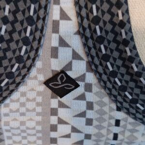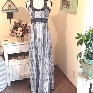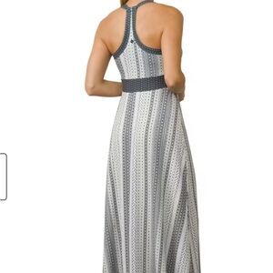Amazing athleisure maxi dress. Super soft, quick dry fabric. Strappy top in contrasting fabric. Built in bra, no pads. Geometric stripes. Size XS measures