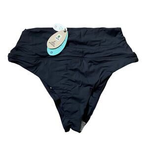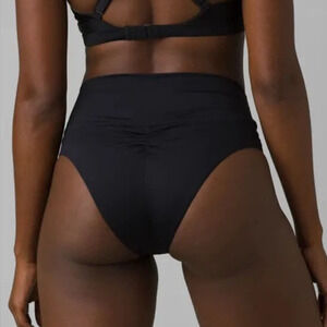 Prana Aurelia Swim Bottom Women's XS Black High Waisted Ruched Bikini Brief NWT