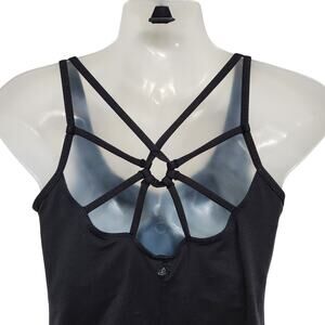 Prana Back Strap Keyhole Ruched Padded Swim Tankini Top Black Size Medium