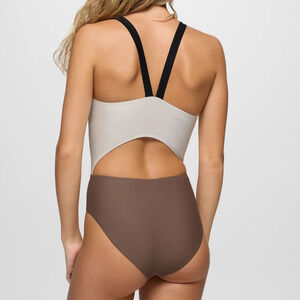 Prana Baja Bound Cutout One Piece Swimsuit Women's L Rose Fire Colorblock Cheeky