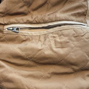Great Prana barn jacket. Zippered front. Side pockets, inside zippered pocket and arm zippered pocket. Double snaps at cuff for fit and double snap for roll back of sleeve. Organic Cotton. Size Medium