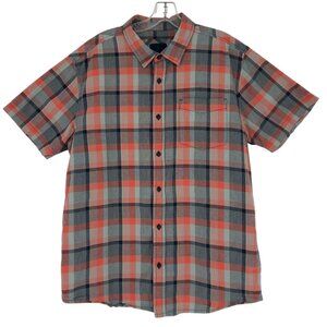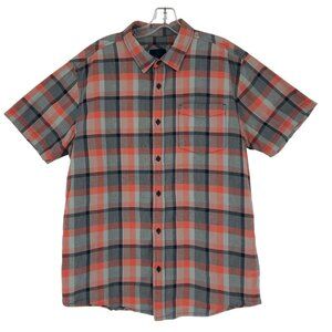 Prana Benton Red Plaid Organic Cotton Button Shirt Men Standard Fit Large