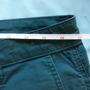 Prana Bermuda shorts in a teal color. Button up with 2 front pockets and 2 back pockets with snap closure. Organic cotton/lycra. Size 10. EUC.