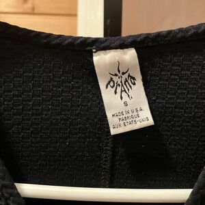 Elegant black long sleeve top. Textured fabric with a gathered front detail. Perfect for casual or dressy occasions.