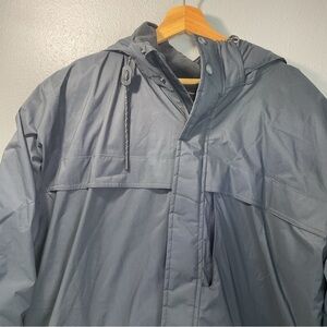 Embossed leather zipper pull tabs, hanger loop and toggles