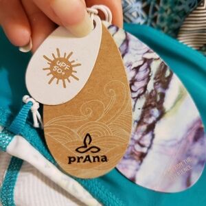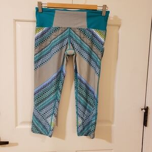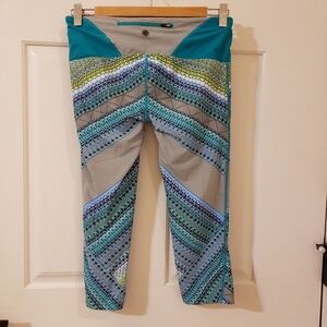 Prana Blue Teal Green Rai Swim Surf Tight Yoga Abstract Print Capri Leggings S
