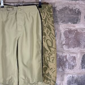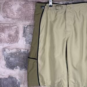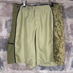 Prana Board Shorts Men's Large Green Mixed Prints Belted Pockets Vacation Summer
