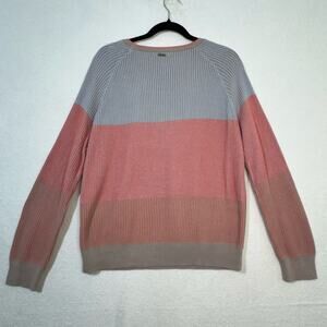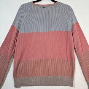 Prana Branagan Pink & Blue Color-Block Striped Cre Sweater Organic Cotton Medium