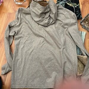 Prana Breathe Beige Gray Hooded Long Sleeve Top Pullover