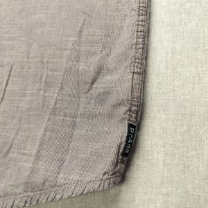 Prana Breathe Button Down Shirt Mens Small Taupe Short Sleeve Micro Strips