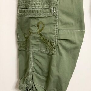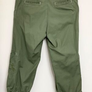 Prana Breathe Cropped Green Drawstring Cargo Hiking Pants Stretch Capri