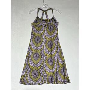 Prana Breathe Lotus Flower Print Dress Small Purple Green Athletic Sundress