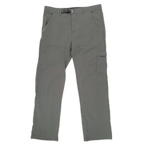 Prana Breathe Pants Men's 38x32 Gray Nylon Cargo Pocket Roll Up Hiking Camp EUC