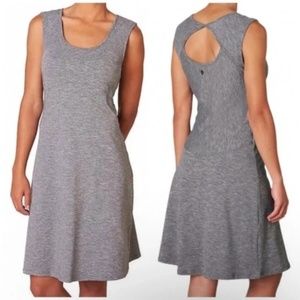 Intricate seaming on this prAna Calico Athletic dress creates a subtle slimming effect. The scoop neck and open back help keep you cool. Soft stretch fabric allows comfortable free movement. Supportive shelf bra. Dropped back waist.