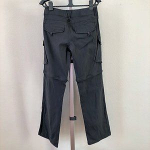 Prana gray cargo pants with removable zipper legs for shorts in a size 0. Preloved in excellent condition.