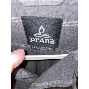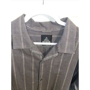 This mens gray striped Prana casual shirt is in great shape! This item comes in a size XL Armpit to armpit is 26 Armpit to sleeve is 4 Back of collar to hem is 32 Thanks for looking at our item!