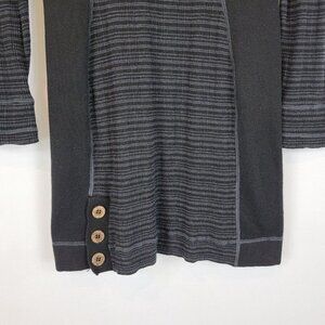 Prana Coal Kelland Turtleneck Wool Blend Sweater Dress Womens Size XS Black Gray. Excellent Pre-Owned Condition (Review Photos For Details) US Size: Women's XS Features: * Style Profile: Neutral, Striped, Casual * Flaws: No holes, stains, or tears. No drawstring on the neck * Black and gray * Turtle cowl neck * Long sleeve * Stretchy * Short length * Logo on the back of the neck * 3 button accents on the front bottom corner - has an extra button * Sweater material - tight knit * Please see photos for approximate measurements (in inches) * Washing instructions: Machine washable * We are happy to answer your questions! * UNMODELED item is the product you will receive! Super Fast Shipping: We ship out the next business day! SMOKE FREE ENVIRONMENT CROSS POSTED NOTE: We attempt to display product images as accurately as possible. However, due to lighting and different devices you might be using while viewing the image, the color in the image may vary slightly. Please review all the images of the product and read the product description before placing your order. 60