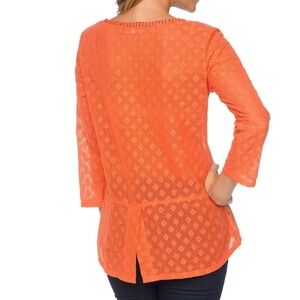 Prana | Coral Winnie Boho Mesh Lace Embroidered Peasant Top, Large