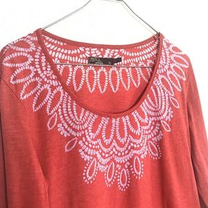 Item: Beautiful coral tunic with printed white details. Perfect yoga and weekend top.