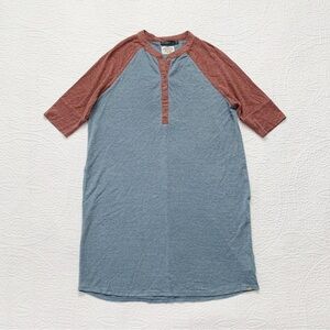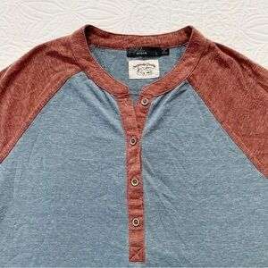 * Henley placket and sleeves in red, main body in blue, lightly heathered