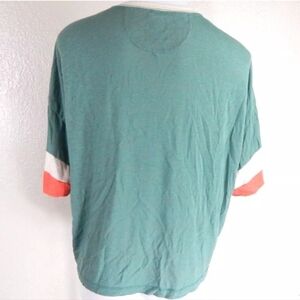 Item: Women's Cozy Up Skywalk Tee Oversized Short Sleeve Green Pink