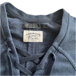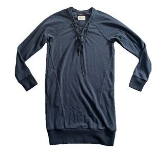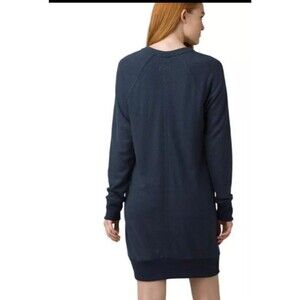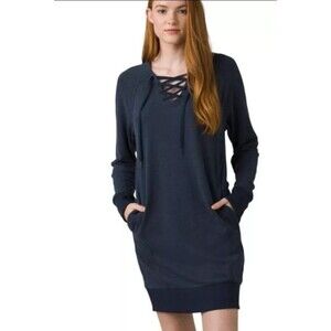Prana Cozy Up Terry Dress Nautical Blue Long Sleeve Lace Up Relaxed Hemp Size XS