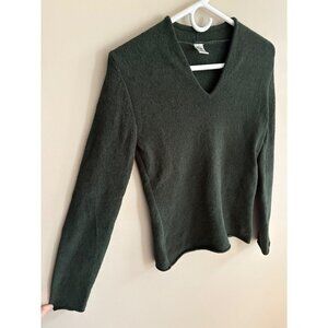 Prana Cozy V-Neck Fleece Sweater in Hunter Green Size Small Hiking Outside