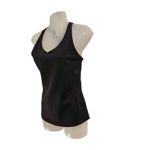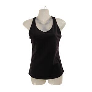 This is a women's PrAna tank top in size S, featuring a v-neckline, pullover closure, black color, and a padded bra with a racerback design.