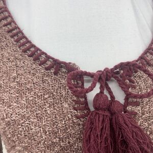 Prana Crochet Trim Sweater Womens S Raisin Stitch Tassle Cotton Tweed Scoop Neck