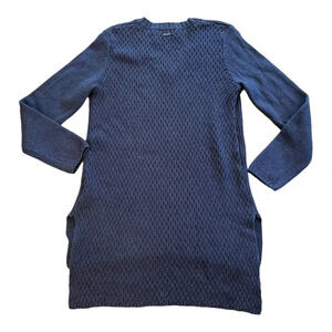 Organic cotton blend mid weight sweater knit -Long sleeved v-neck tunic with oversized side vents -Mixed knit stitches used throughout to provide pattern and texture -Relaxed fit