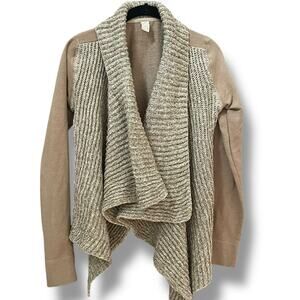 Prana Demure Cardigan Sweater Size Small beige Brown Waterfall Open Wool Blend Shell: 60% Organic Cotton, 40% Polyester, Trim: 30% Wool, 70% Acrylic