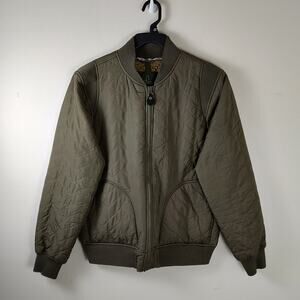Prana Diva sherpa lined quilted olive green bomber jacket womens Large