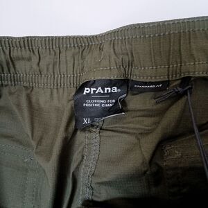 Prana Double Peak Elastic E Waist Shorts Mens XL 8 In Inseam Green Cargo Organic