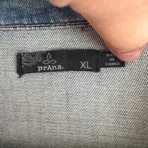 Prana Dree Jacket Blue Stretch Denim Button Front Pockets Long Sleeve Sz XL