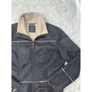 Embossed faux suede exudes undeniable cool while the nubby faux-shearling lining contributes an ideal measure of cozy warmth to keep you perfectly balanced long after you leave the yoga studio.