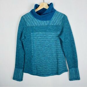 Prana Eleanor Teal Green Wool Blend Mock Neck Sweater Size Small