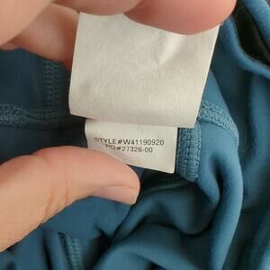 prana women's leggings size small style number w41190920 blue recycle nylon pockets side for phone has some piling inseam 26 rise 9