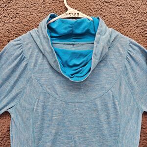 Prana Ember Top Women Size Medium Blue Cowl Neck Sweatshirt