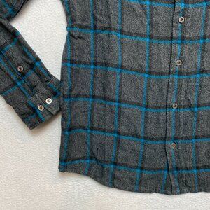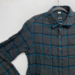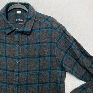 Prana Flannel Shirt Mens M Gray Long Sleeve Plaid Button Up Heavy