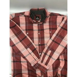 Prana Flannel Shirt Mens Size 2XL Brick Red Plaid