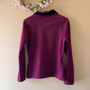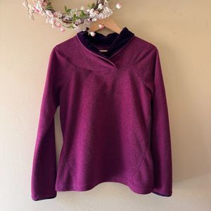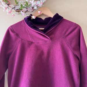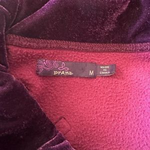 Soft Prana fleece pullover with velvet collar. In good pre-owned condition with normal wear.