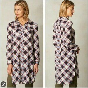 Prana Flint Maxi Shirt Long Sleeve Dress size XS, Maroon, Mauve, Blue, White