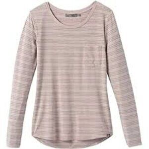 Prana Foundation Long Sleeve Crew Neck Top in Khaki Rose Heather M