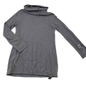 Prana Gray Organic Cotton Long Sleeve Cowl Neck Tunic With Front Pocket & Adjust