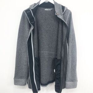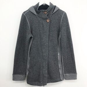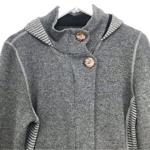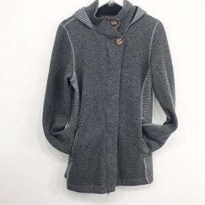 Prana Gray Striped Hooded Tunic Zip Up Knit Fleece Wool Blend Jacket