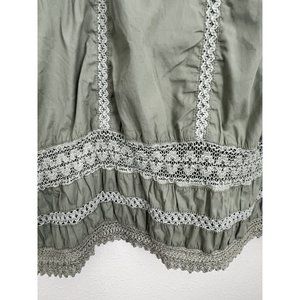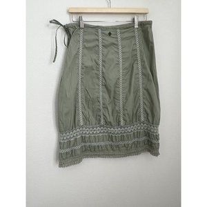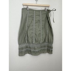 Prana Green A-line Skirt With Crochet Accents, Side Zipper, And Side Tie. Small
