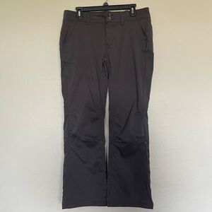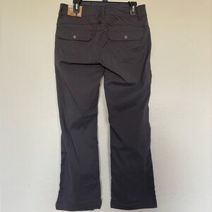 Prana Halle Pant Short Inseam in Coal size 10. New with tag. The prAna Halle Pant is cut from Stretch Zion fabric to wick the skin dry, and woven with a durable water repellent finish. Articulated knees and easy-roll pant legs make this straight leg, mid-rise, relaxed fit pant cross-functional. Complete with a button fly and a hidden zip stash pocket at upper right leg.